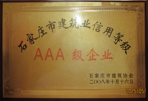 石家莊市建筑業(yè)信用等級(jí)AAA級(jí)企業(yè)